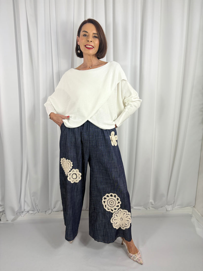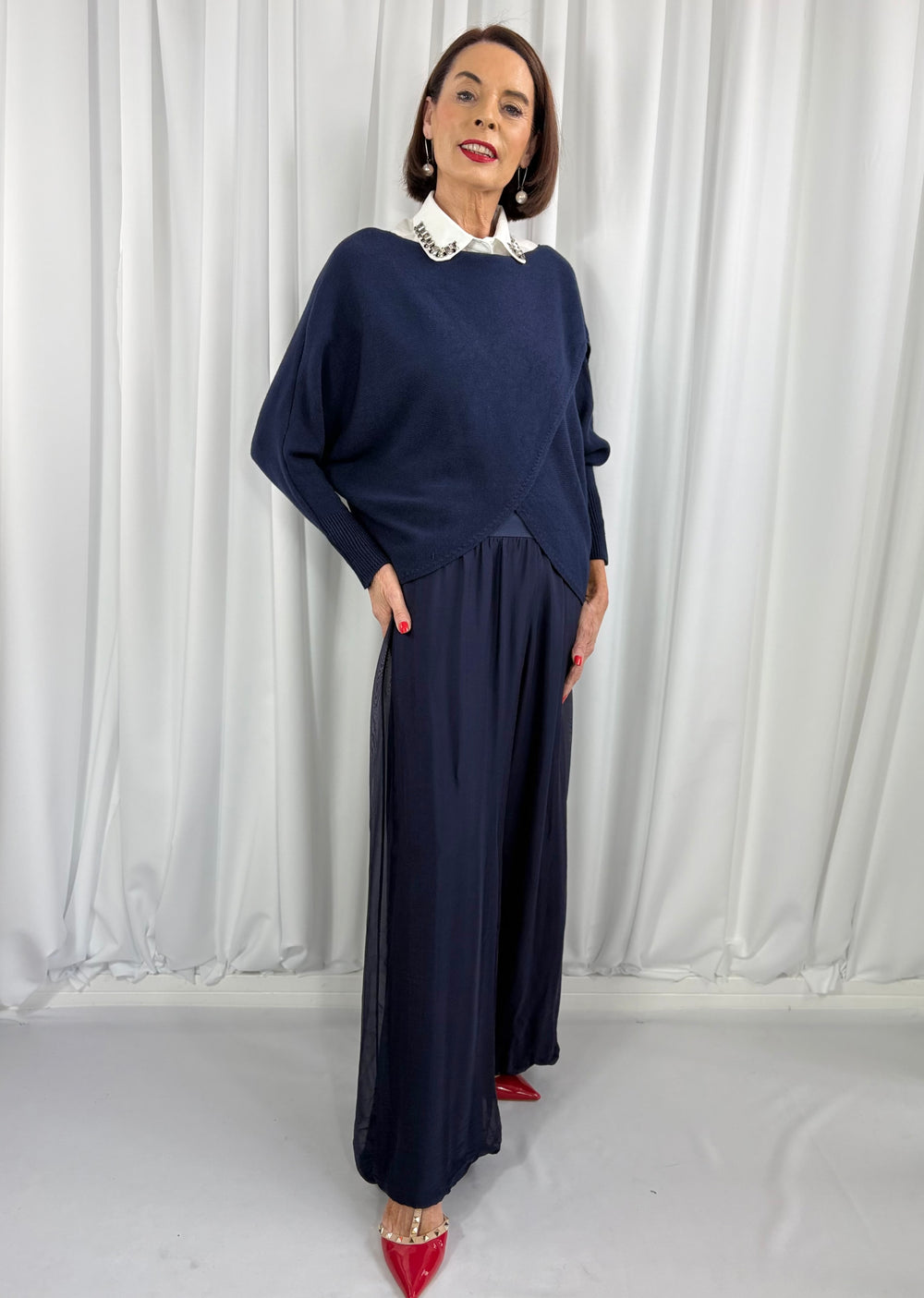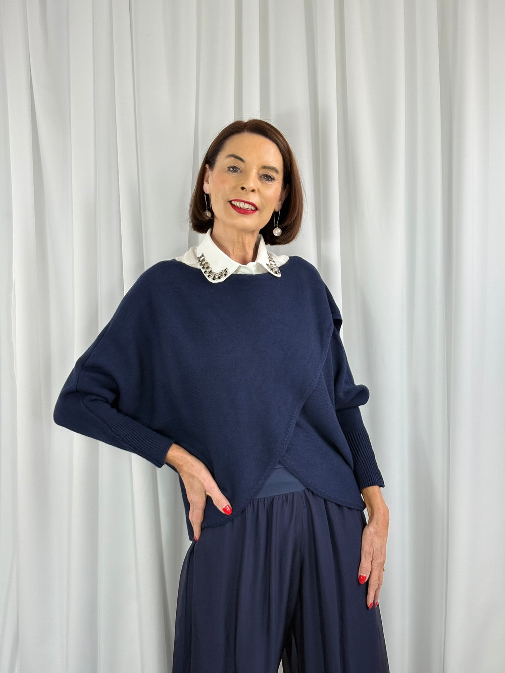 Giana Asymmetric Slouchy Fine Knit in Navy