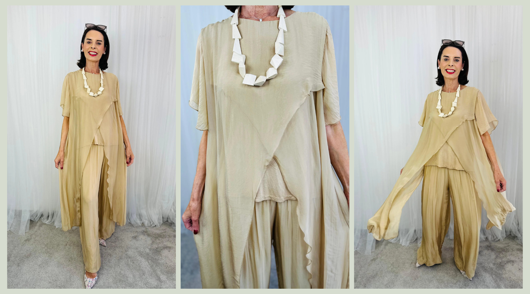 There are some pieces in a wardrobe that quietly do it all. They flatter, they float, they elevate an outfit in a way that feels entirely effortless. The Lucy Waterfall Top in Camel is exactly that — a light, layered top that brings together soft femininity with strong, sculptural lines.