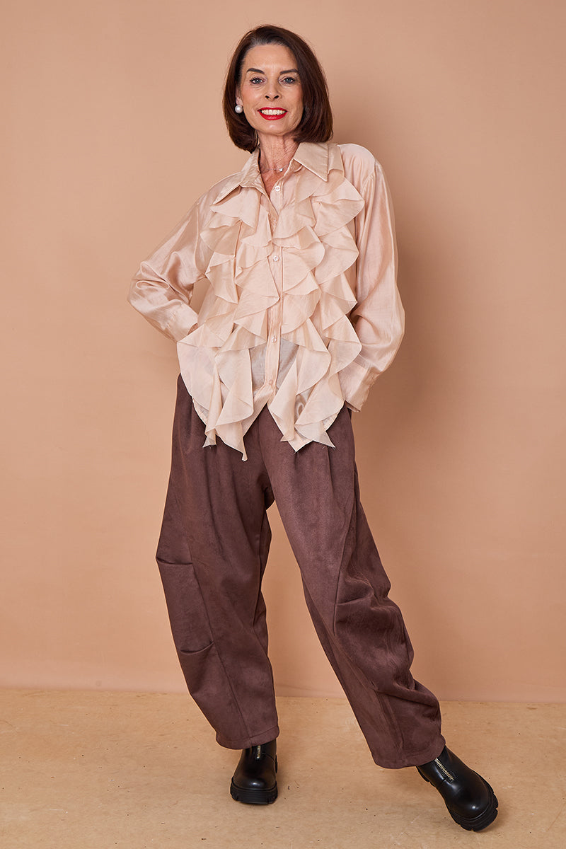With a classic collared neckline, long sleeves with buttoned cuffs, and a length of 78cm, this womens shirt drapes effortlessly and offers all the comfort of an oversized silhouette while still feeling elevated. The generous pit-to-pit measurement of 80cm makes it a flattering fit for UK sizes 10–18, offering room to move while skimming the frame in just the right way.