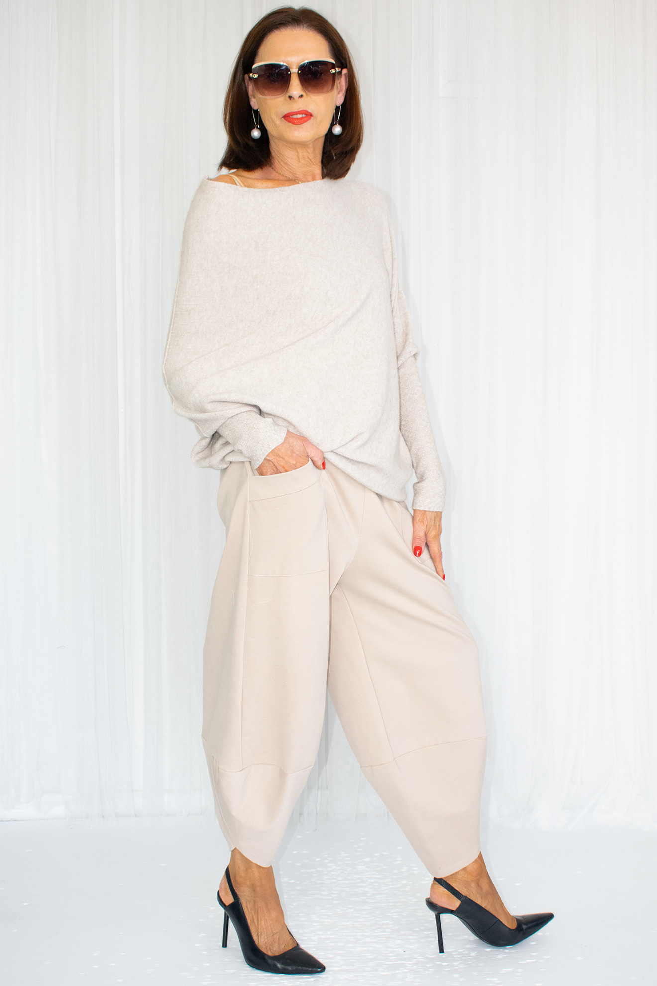 Giana Asymmetric Slouchy Fine Knit in Oatmeal