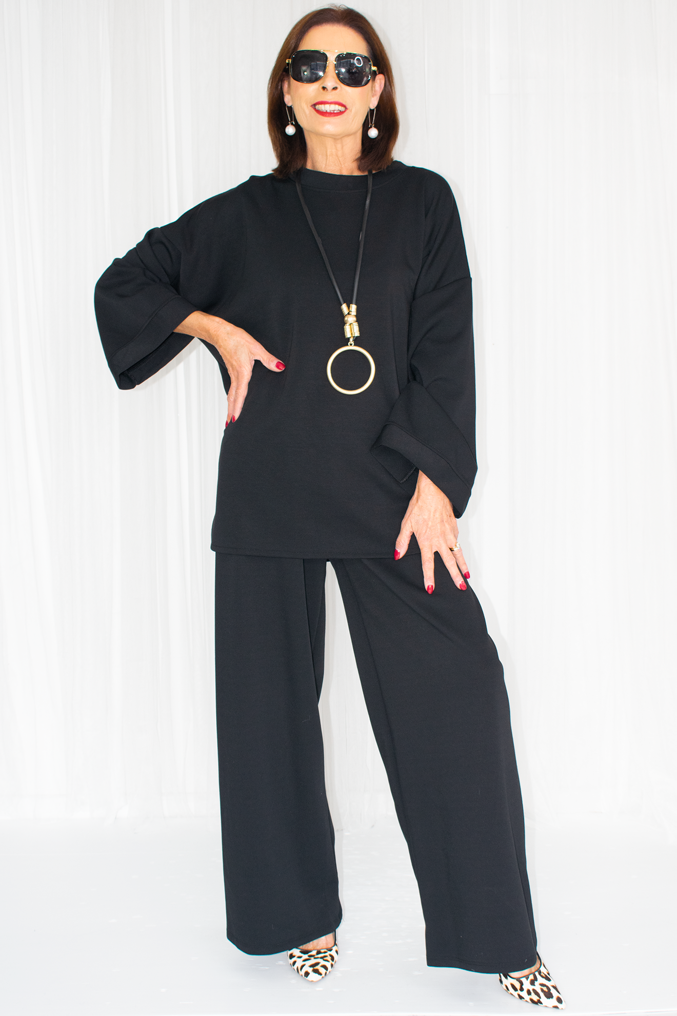 Sylvia wide leg palazzo trousers in navy