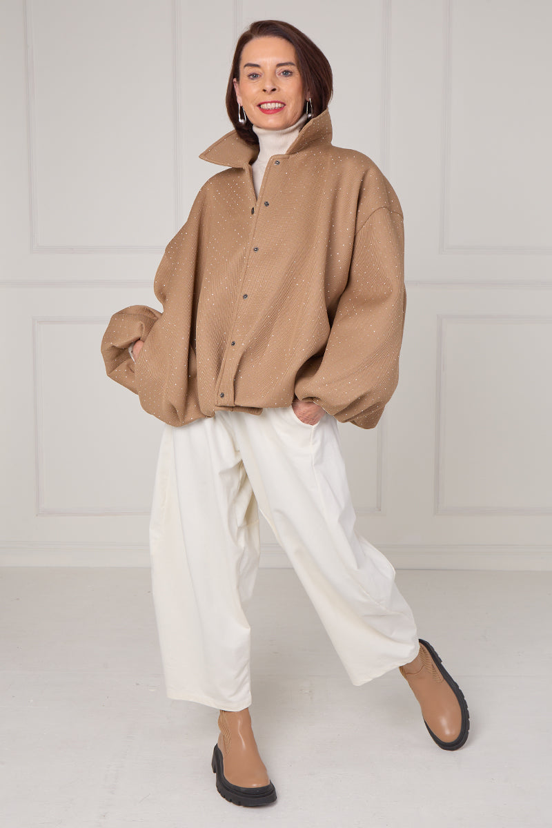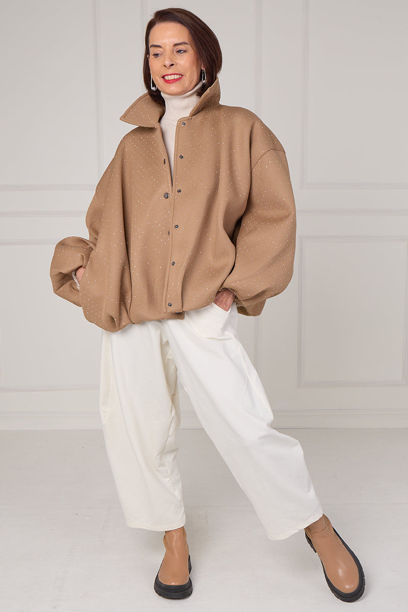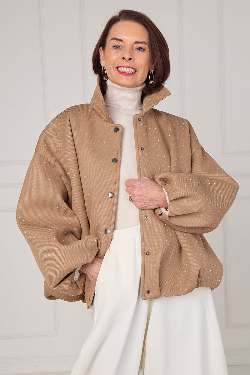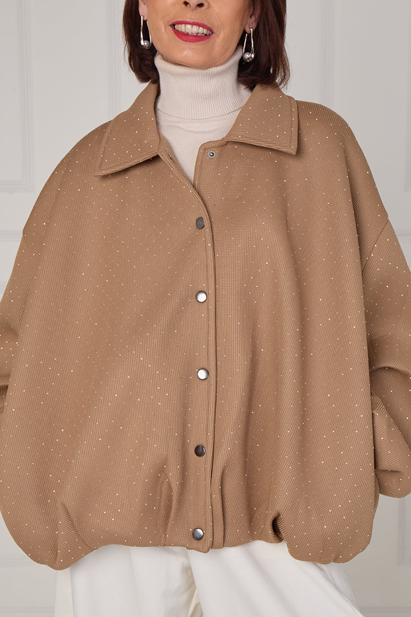 Tina exclusive diamante studded jacket in camel