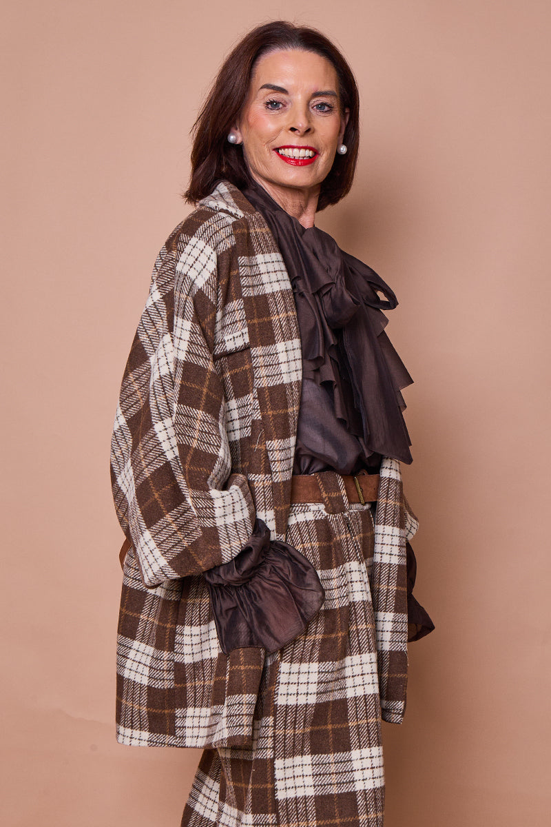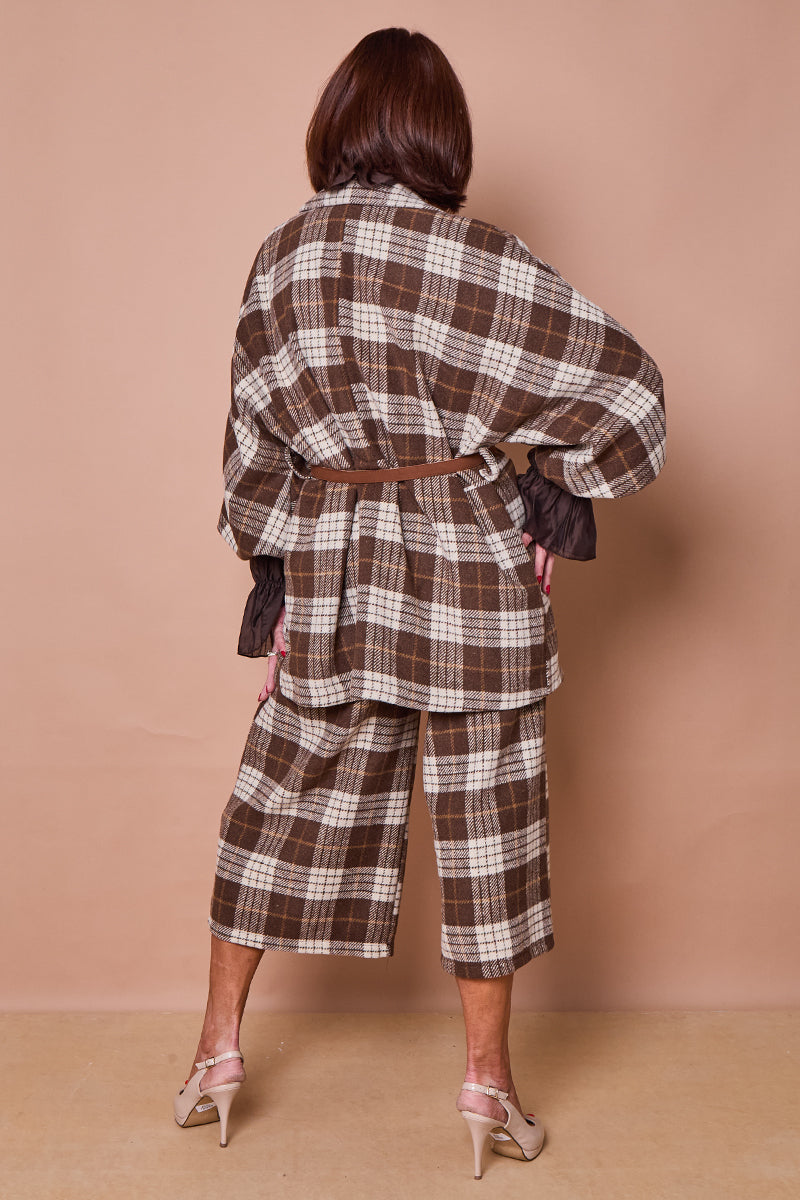 Add a touch of sophistication to your look with this elegant checked jacket, designed for effortless layering and timeless appeal. Crafted from soft, premium fabric, it features a relaxed silhouette that drapes beautifully over any outfit. The open-front design and structured tailoring offer both comfort and style, making it a versatile piece for both casual and refined ensembles.