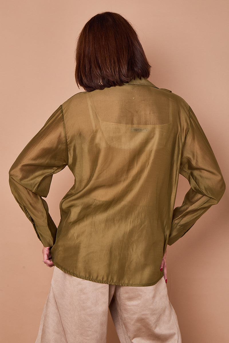 • Coco ruffle shirt in olive green
