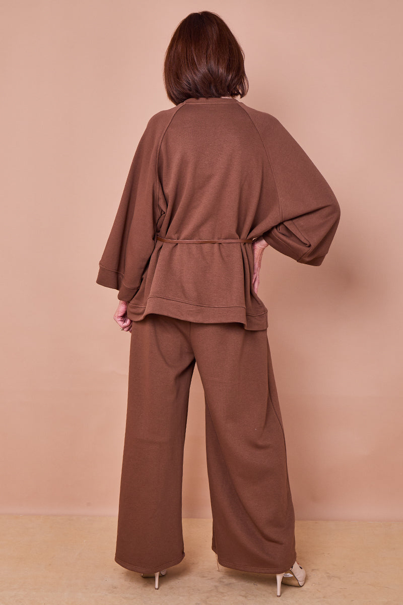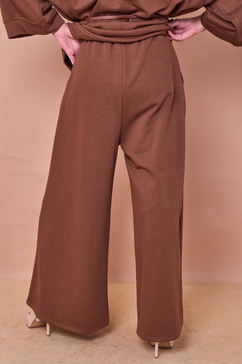 Experience the ultimate fusion of comfort and dramatic style in these Effortless Wide-Leg Knit Trousers. Crafted from a plush, soft-touch knit fabric, they feature an extremely wide-leg cut that drapes beautifully to the floor, creating a graceful, elongated silhouette perfect for elevated loungewear.