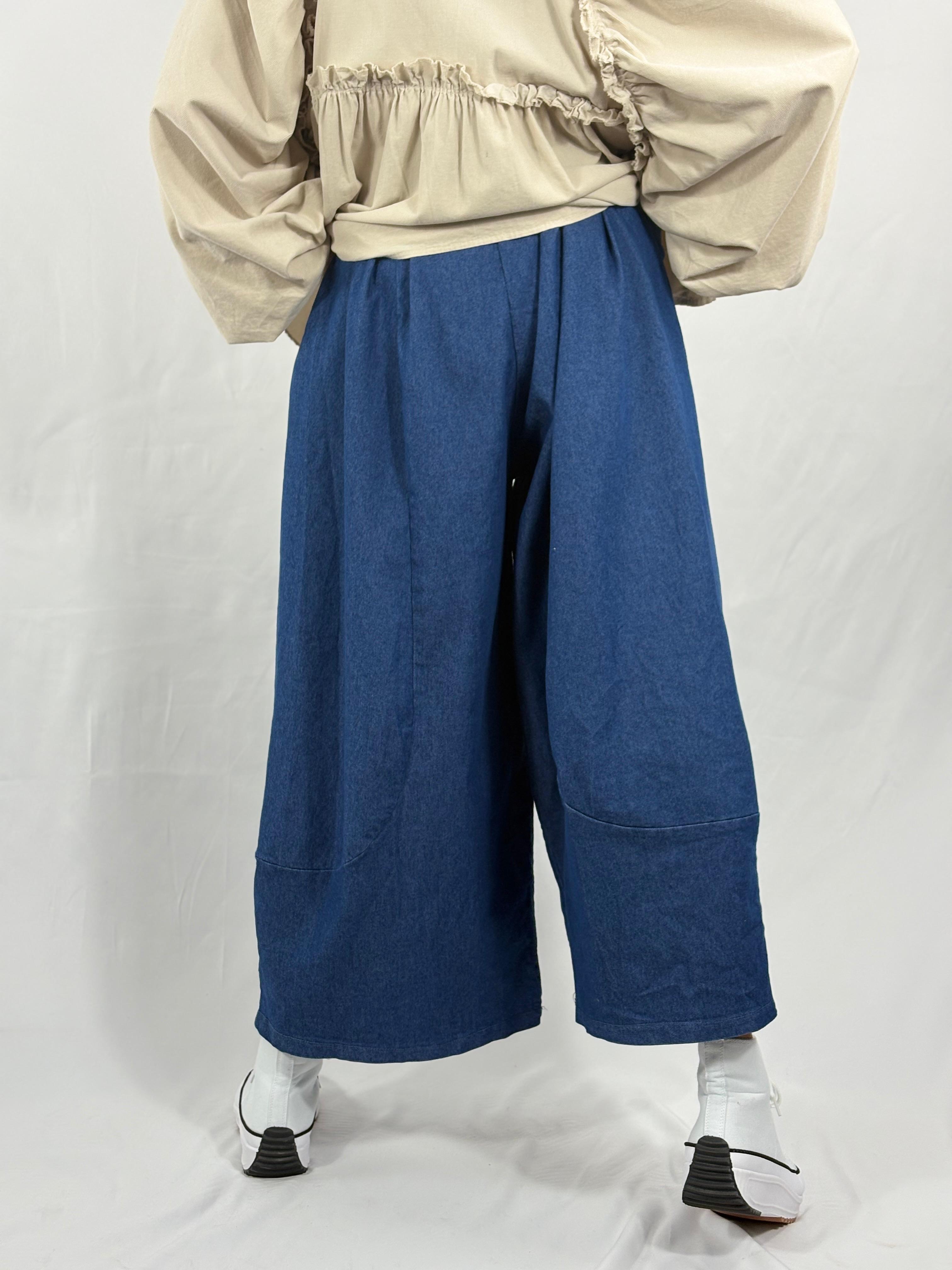 These jeans feature a contemporary wide-leg silhouette with a relaxed, cropped length that creates a strong yet effortless shape. Designed with a structured waistband, they sit comfortably at the waist and fasten securely for a clean, streamlined fit. Deep, curved front pockets add both practicality and visual interest, while subtle seam detailing enhances the sculpted form of the legs.