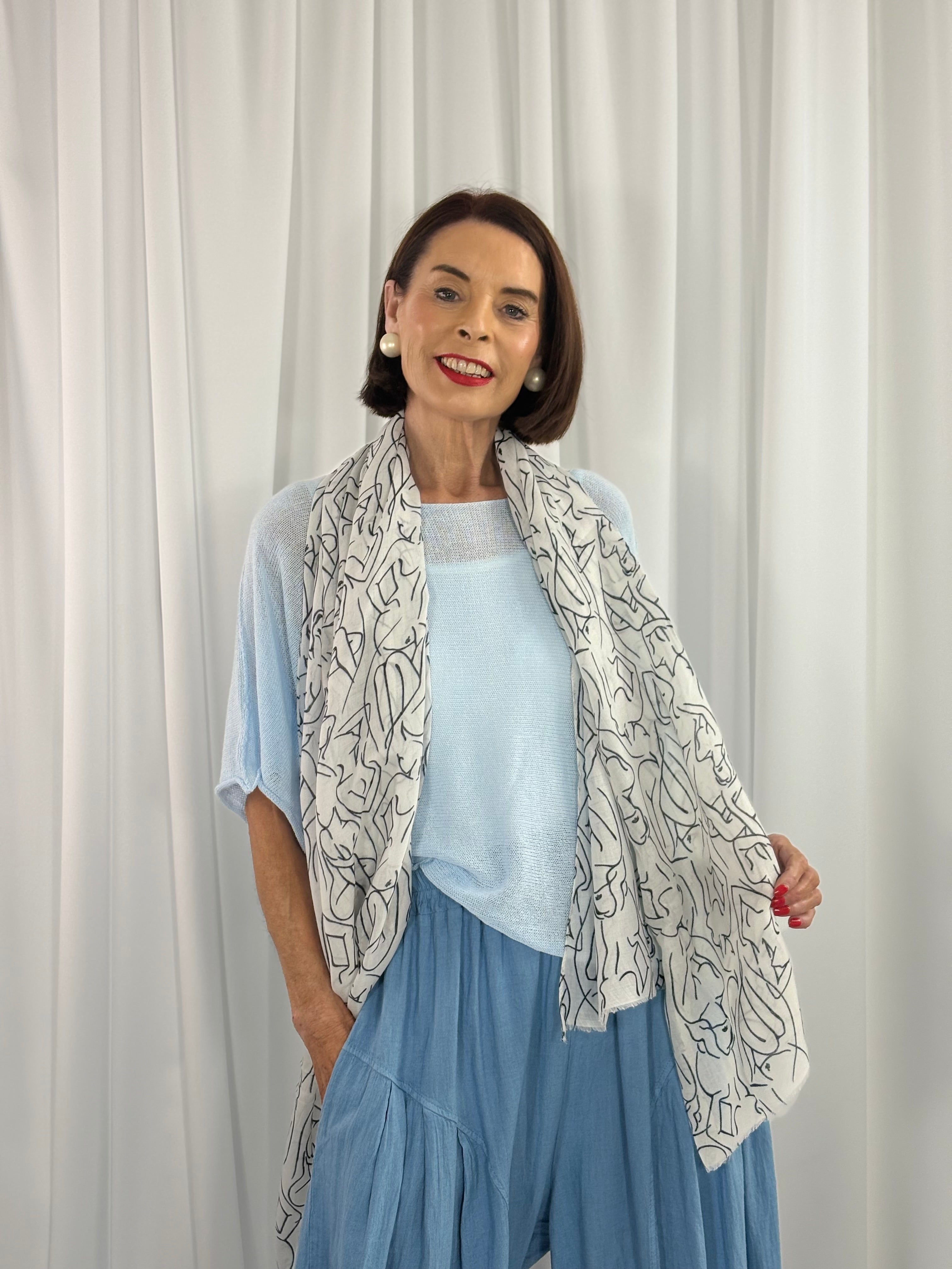 Monic scarf in white with black pattern