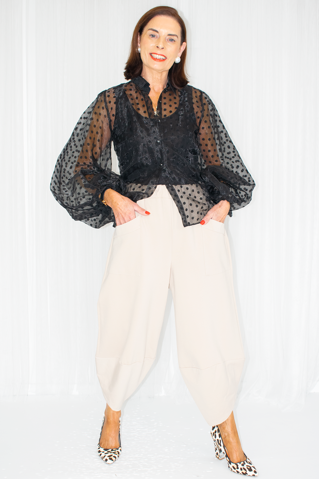 Reagan Scuba Two Pocket Cocoon Trouser in Beige